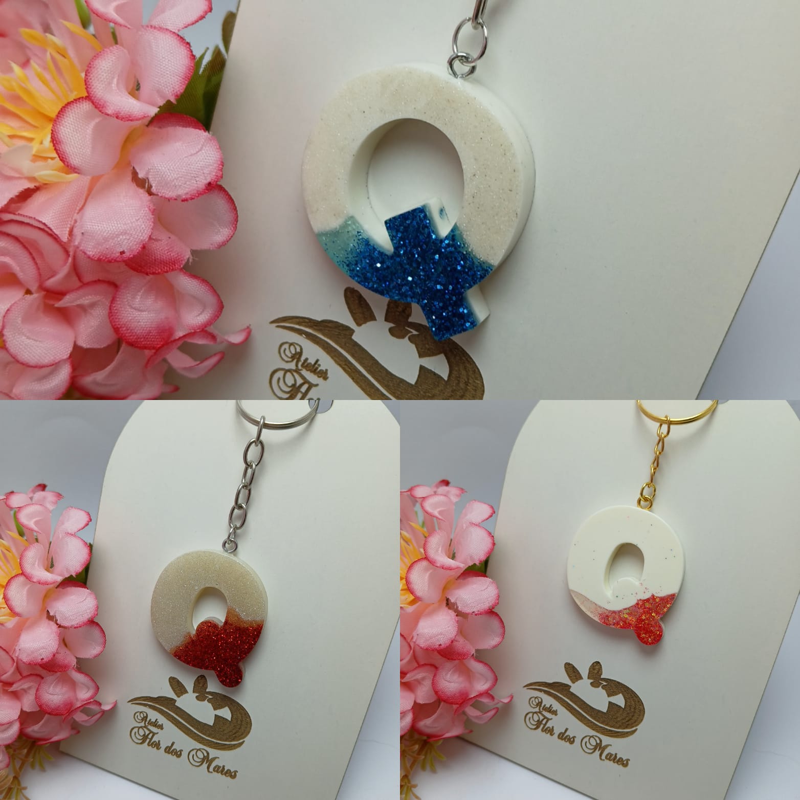 Letras cheias de estilo e personalidade! Produzidos artesanalmente, nossos chaveiros em resina são perfeitos para presentear ou usar no dia a dia.