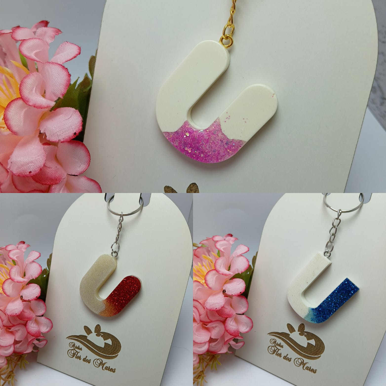 Letras cheias de estilo e personalidade! Produzidos artesanalmente, nossos chaveiros em resina são perfeitos para presentear ou usar no dia a dia.